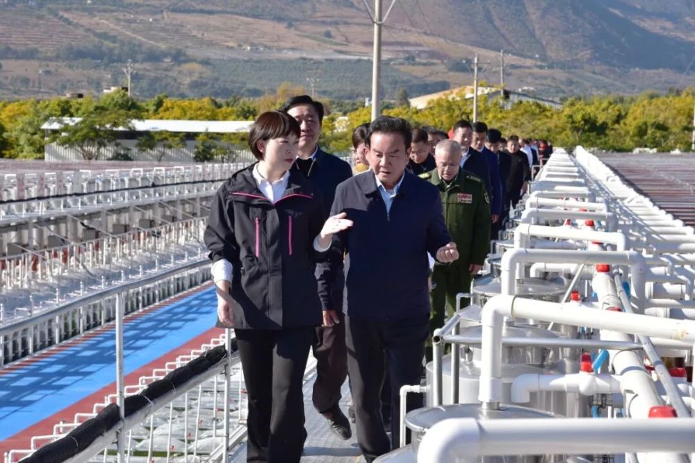 12月18日,與會人員實(shí)地調(diào)研程海鎮(zhèn)東湖村紅球藻萃取蝦青素項(xiàng)目。(麗江融媒記者 和麗勇 攝)